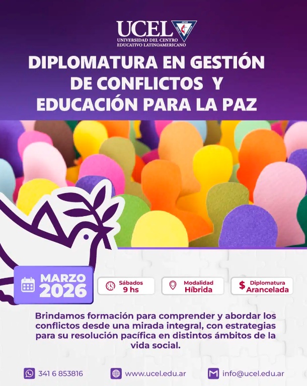UCEL - Diplomatura en Gestión de Conflictos y Educación para la PazFecha de inicio: 21 de Marzo de 2026 - Duración: 10 meses - Carga horaria:...