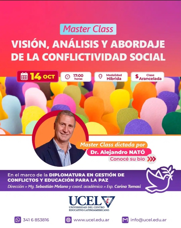 UCEL - Master Class: Visión, análisis y abordaje de la conflictividad social - 14/10/2025Martes 14 de Octubre de 2025 - Duración: De 17 a 19 horas - Carga horaria: 2...